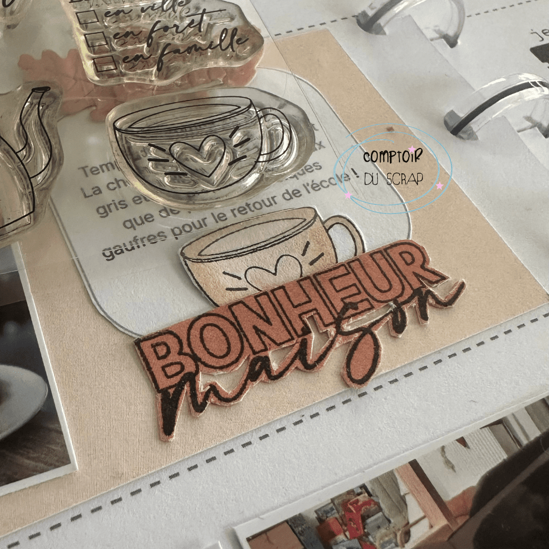 Planche de 10,5 x 14,8 cm composée de tampons transparents (ou clear) JUILLET AOUT de la collection IL ETAIT UNE FOIS à utiliser avec un bloc acrylique.